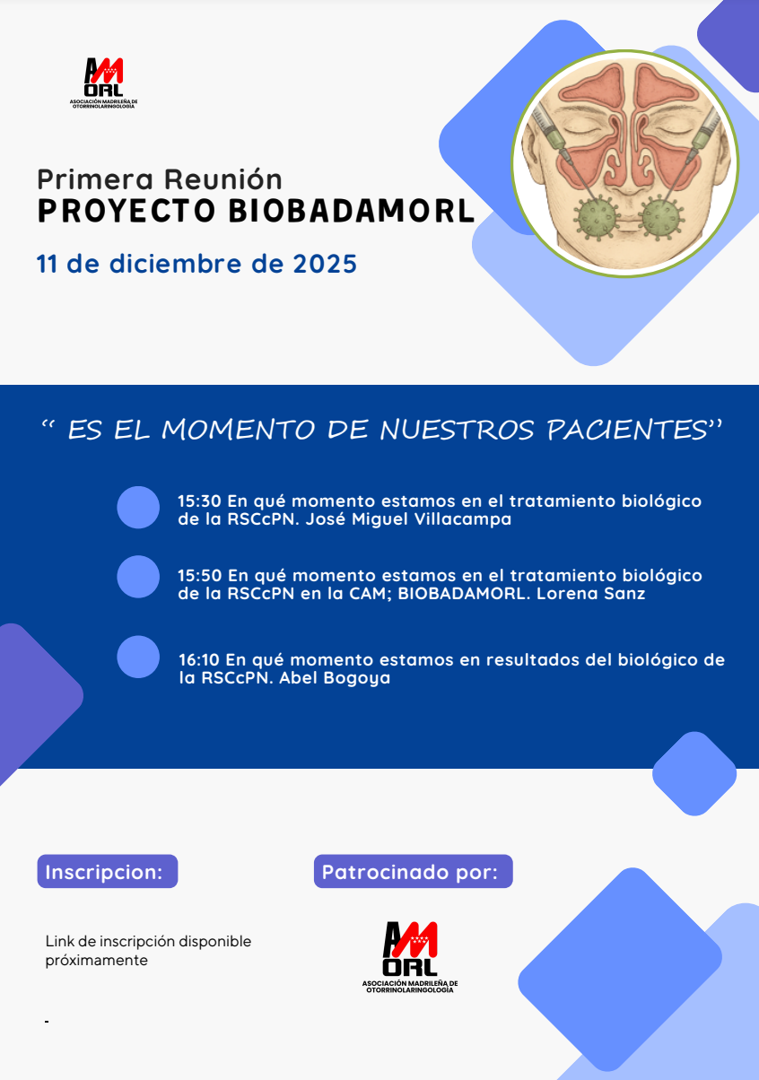 Desde AMORL presentamos el lanzamiento del Proyecto BIOBADAMORL, una iniciativa centrada en el seguimiento y análisis del tratamiento biológico en pacientes con RSCCPN (Rinosinusitis Crónica con Poliposis Nasal) en la Comunidad de Madrid. Este proyecto nace con un objetivo claro: poner en el centro a nuestros pacientes, recogiendo datos clínicos reales que permitan mejorar la […]