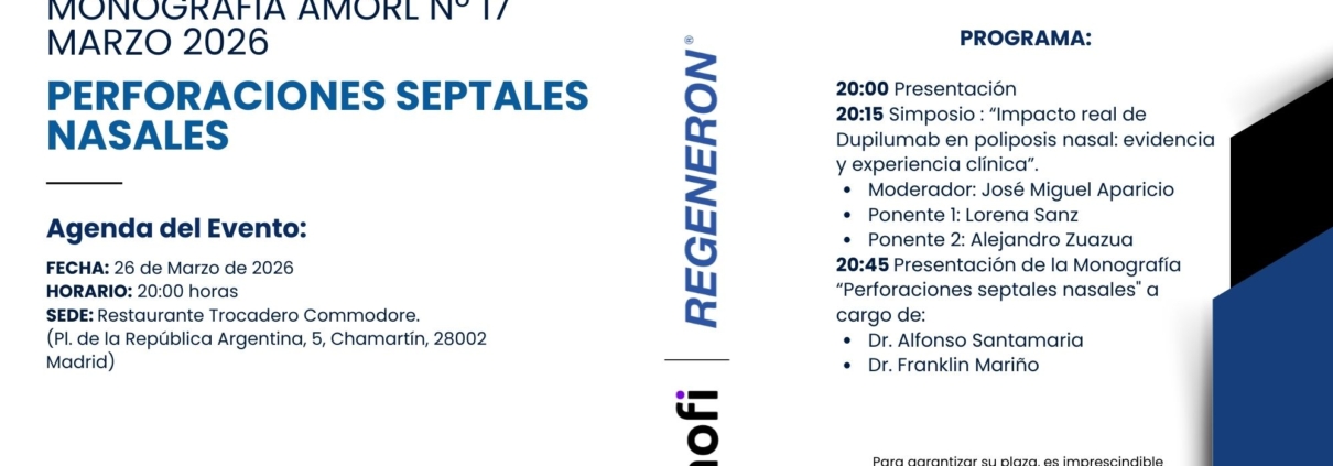 Únete a la presentación de la Monografía AMORL Nº 17, «Perforaciones septales nasales» y participa en el Simposio sobre Poliposis Nasal